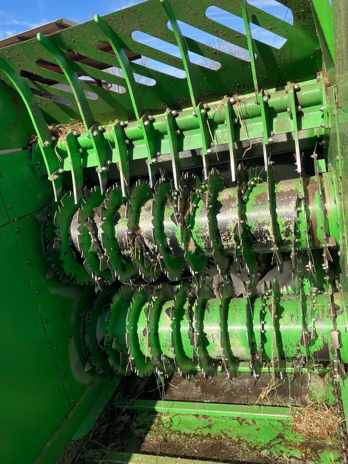 turbine Ø1.60m, 8 pales, double démêleur mécanique, porte hydraulique, tapis chaîne Ø12mm, trappe de nettoyage double fond, porte arrière hydraulique, commandes électriques et double commande sur caisse, goulotte multifonctions tournante 300° avec casquette hydraulique,