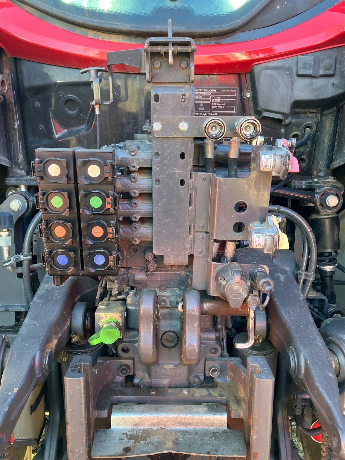 4 RM, transmission powershift 50km/h, cabine suspendue, pont AV suspendu, freins pneumatiques, chargeur Quicke G5 avec 3éme fonction et attache Euro, coupleur rapide, relevage AV, PTO AV, 3pts hydraulique, 4 DE.