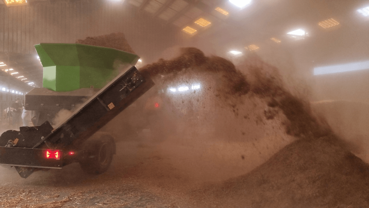 Le broyeur PIRANHA pour paille ou foin conçu pour bottes carrées ou rondes et pour le broyage de la paille pour méthanisation ou le paillage bovin, volaille et ainsi que pour le broyage du foin pour alimenter les animaux. Le tout tombe sur un tapis qui amène ces différentes matières vers un tapis releveur latéral droit ou arrière selon le modèle. Puissance nécessaire 150 cv, poids 4 300 Kg, largeur de la cuve 3 m.