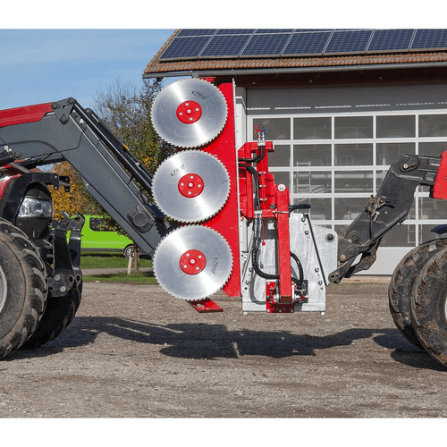 Différents modèles de lamiers à scies polyvalents à monter sur chargeur frontal dont existe différents accessoires appropriés pour toutes sortes de situation.