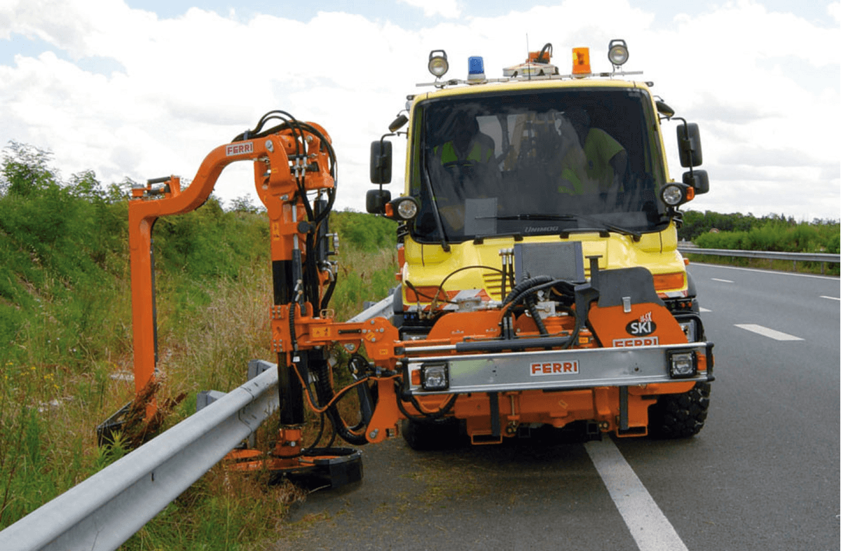 Les faucheuses sous glissière SKI DX pour fauchage de l’herbe sur les bas-côtés des routes, autoroutes particulièrement lorsqu’il se trouve des barrières de sécurité. Avec un dispositif hydraulique permettant d’éviter les obstacles tels que les arbres, les panneaux de signalisation, les poteaux d’éclairage…sans réduire la vitesse d’avancement. Puissance nécessaire du tracteur 80 à 110 cv.