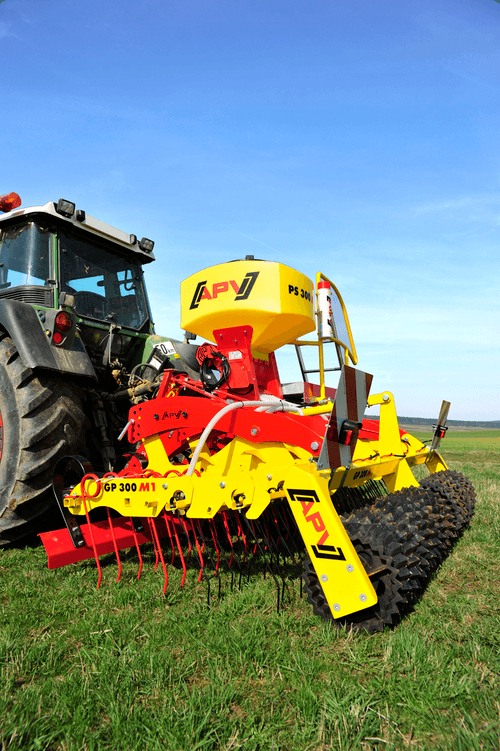5 - Rouleau de prairie GW pour les grandes cultures. Combinaison possible avec une herse frontale ou un semoir APV (PS ou MD). Rouleaux Cambridge 390 mm ou 530 mm ou rouleau denté 410 mm créent une structure de lit de semences friable et de bonne qualité Compartiment à outils intégré dans le cadre