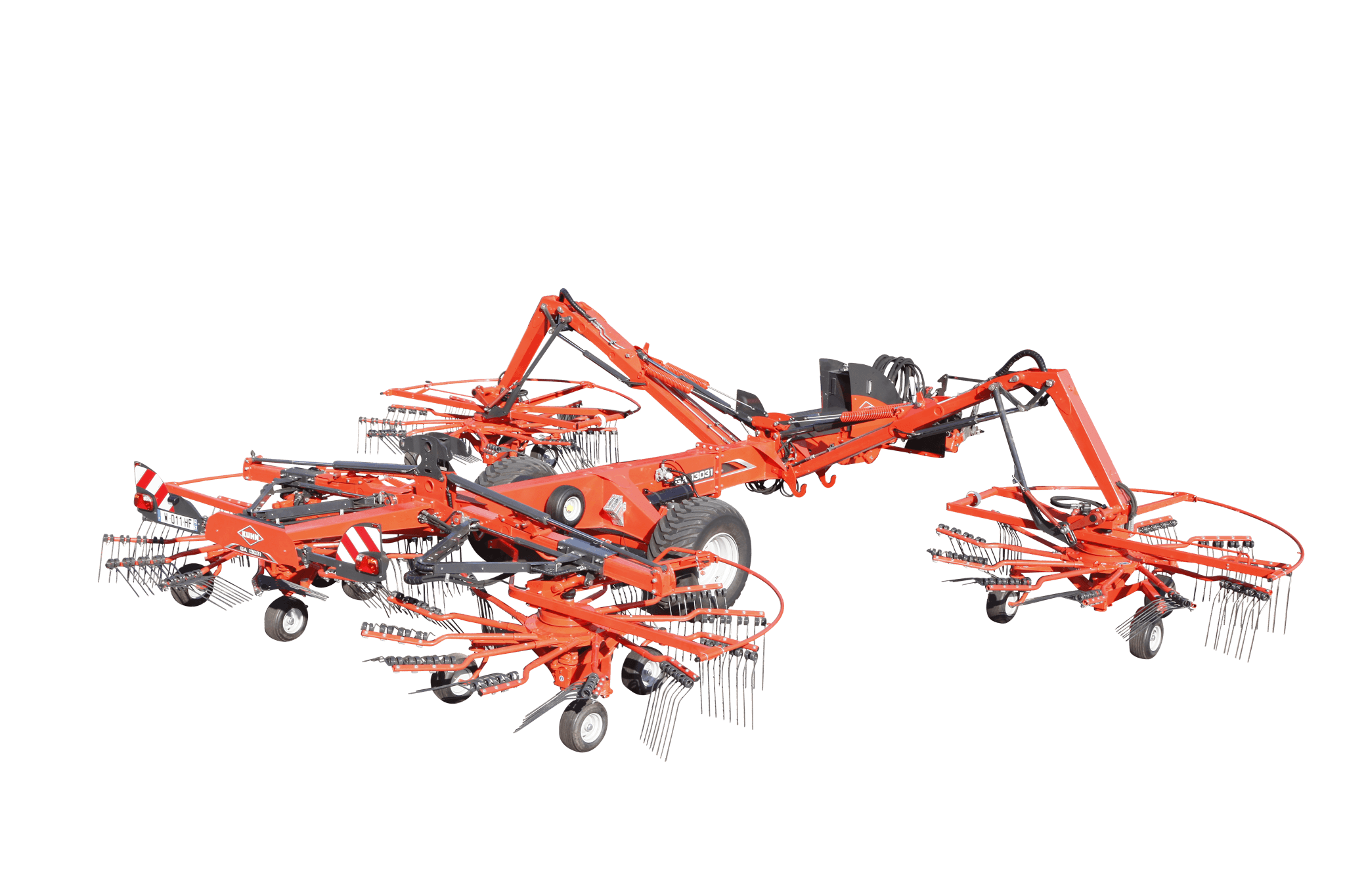 Le nouvel andaineur quatre rotors GA 13031 délivre des andains centraux. Il travaille entre 8,40 m à 12,50 m. Son entraînement 100% hydraulique vous permet de gagner une heure de maintenance par jour.