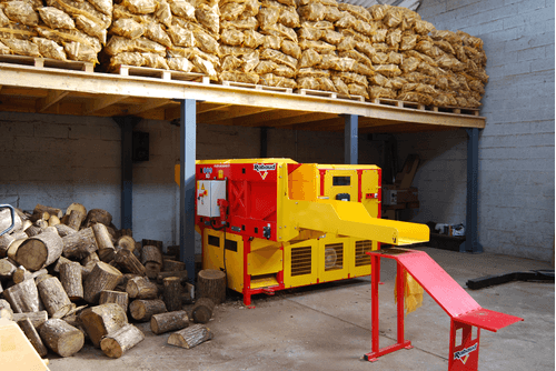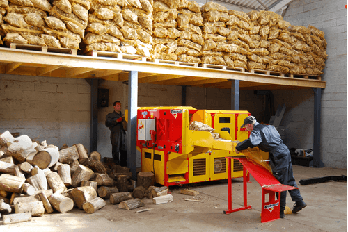 La machine à bûchettes et allume feu XYLOFLAM pour production de bûchette de toutes essences de bois et de bois équarri, fendu ou rond.