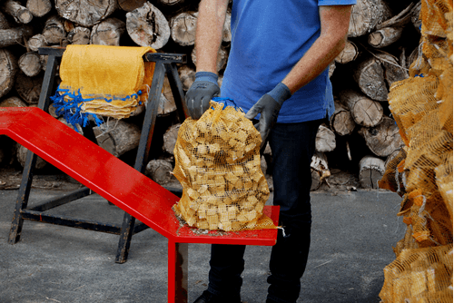 2 types d'ensachage du bois possibles : à l'unité rotative 4 sacs pour bois en vrac ou ensachage pour bois empilé.