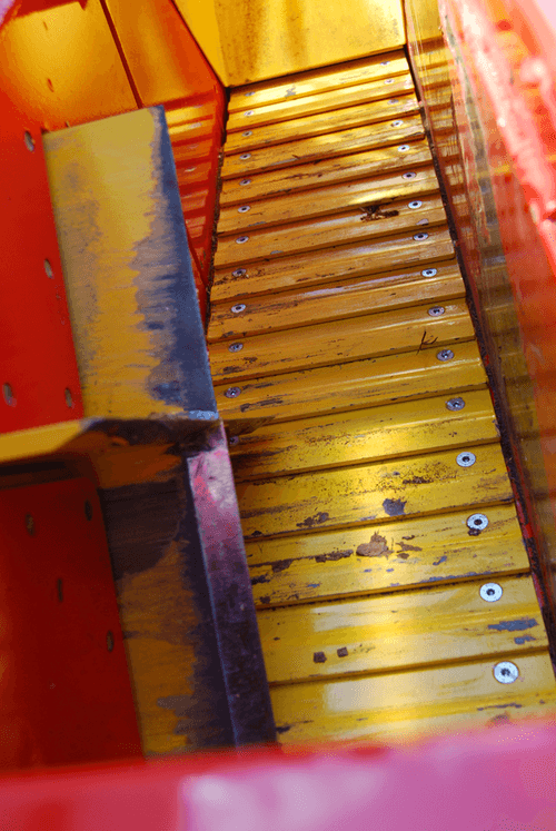 Tapis d'alimentation en acier très robuste avec avancement hydraulique réglable