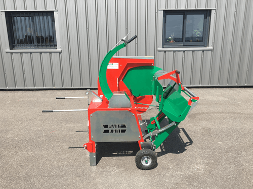 Scie circulaire à chevalet avec tapis monte bois. PDF tracteur 380 tr/min, tapis longueur 5 m, hauteur...