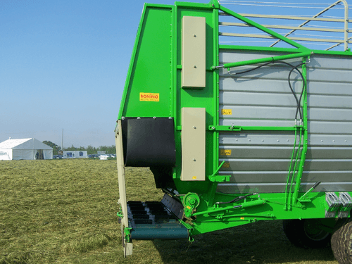 Plusieurs types de déchargement : porte, tapis latéral, démêleurs et tapis d’une largeur allant jusqu’à 1m40 rétractable hydrauliquement.