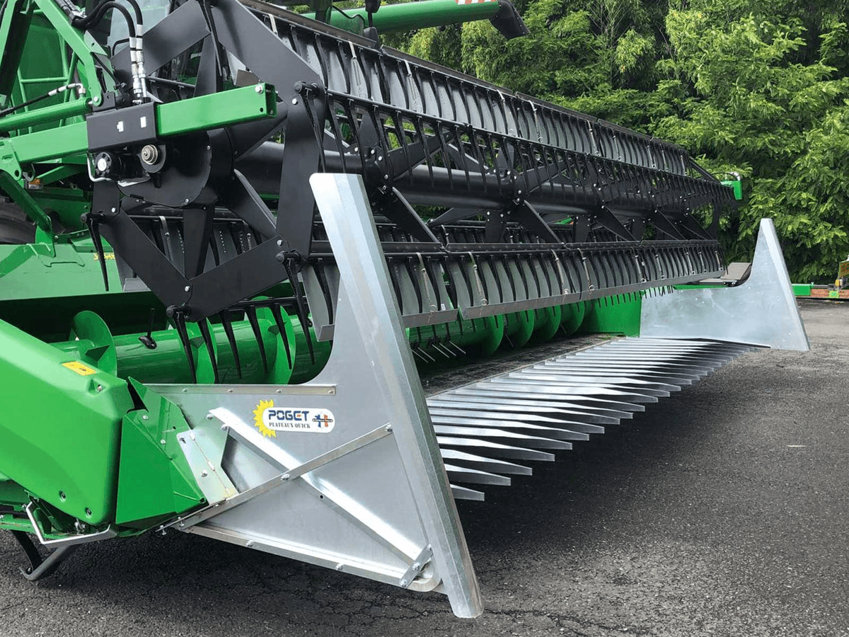 Fixation rapide des plateaux par pincement avec une seule vis de serrage par plateau. S’adapte sur tout type de coupe à céréales de toutes les marques. Longueur de plateaux 1,24m ou 1,45m, écartement entre plateau de 54mm. Livrés prémontés avec diviseurs en tôle galvanisée, temps de montage moyen d’un jeu de plateaux estimés à 1h30. Diviseurs inclus, rabatteurs en option.