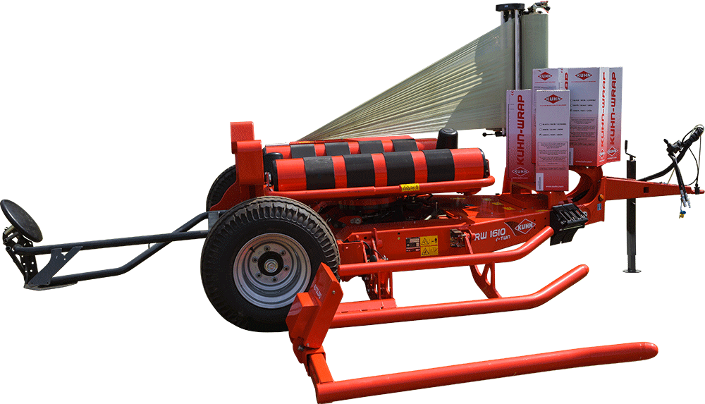 Les modèles KUHN RW 1410 et 1610 sont des enrubanneuses auto-chargeuses traînées offrant plus de polyvalence et d'efficacité. Le modèle RW 1410 est capable de soulever des balles pouvant atteindre 150 cm de diamètre et 1 000 kg. Le modèle RW 1610 peut charger des balles pouvant atteindre 1 200 kg.