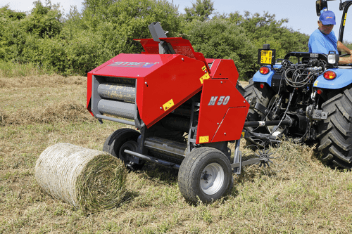 Cette mini presse permet de faire des petites balles cylindriques transportables manuellement. Elle a en outre l’avantage de pouvoir être attelée à des tracteurs de faible puissance et être utilisée dans des endroits à forte pente ou à passages étroits. Disponible pour différents types d’attelage (3 points, timon central, timon latéral), disponible en version filet et version ficelle.