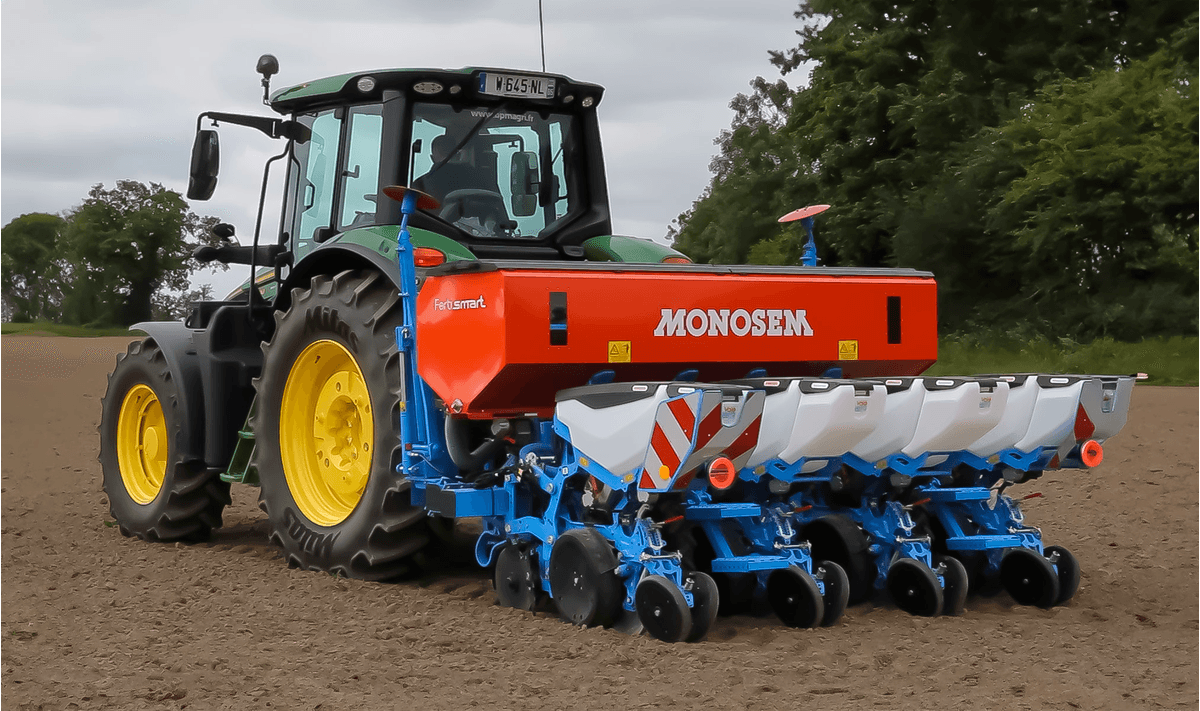 4 rangs (inter rang de 70, 75 et 80cm) ou 5 rangs (deux versions : inter rang de 55 ou 60cm, gabarit routier 3m, ou inter rang de 65 ou 70cm, gabarit routier 3.20m). Trémie 980L, compatible avec doseurs Fertismart. Entraînement électrique pour les distributions, compatibles Isobus. Coupure de rang par GPS et de la modulation de dose, rang par rang, possibles. Compatibles avec gestion de la calibration des distributions depuis un smartphone. Turbine d’aspiration entraînée, au choix, par cardan ou par moteur hydraulique.