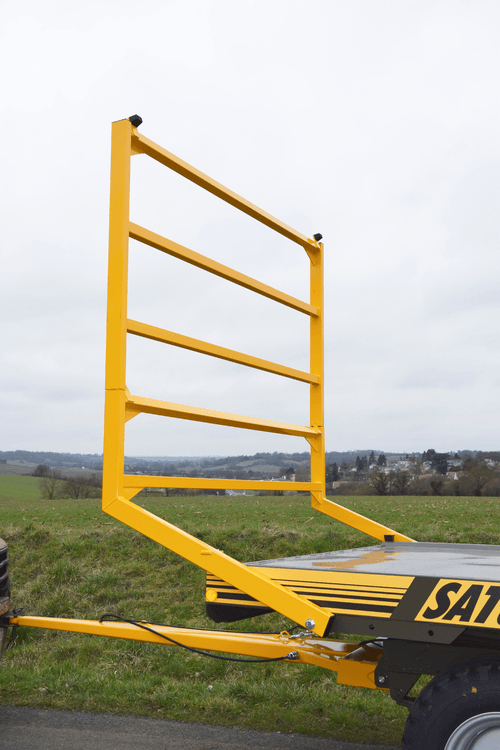 Une gamme de plateaux à paille portés 4 roues Saturne PE et BR avec une charge utile de 12 T à 12,7 T, timon articulé avec ressort de rappel, échelons réglables galvanisés hauteur 0,80m, augmentant la longueur des planchers de 1m. Fond tôlé sur traverses 50x100 mm, largeur 2,5 m. 1 caisson à sangles, gyrophare LED, 3 modèles à freinage hydraulique et 3 modèles à freinage pneumatique. Choix d’équipements en option.