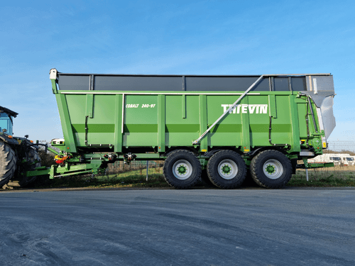 COBALT est une gamme de remorques agricoles à fond poussant-mouvant se composant de 4 modèles de 7,20 à 9,7 m, une hauteur de caisse de 1,50 m et un PTAC de 24, 29 et 32 T.