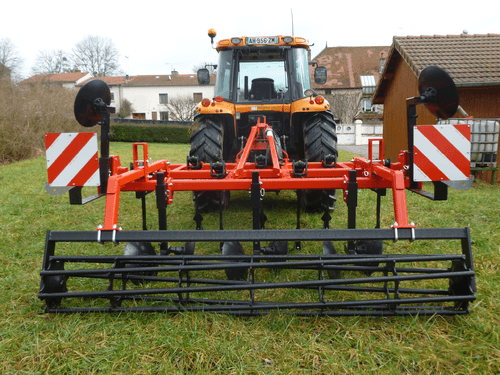 Le déchaumeur à dents porté MAXICULTEUR déchaumeur à dents portés équipé de 2 rangées de dents droites 60 x 25 mm à sécurité boulon, soc réversible avec ailettes largeur 480 mm et un dégagement sous bâti de 850 mm. Châssis bipoutre carré 100 x 100 mm.