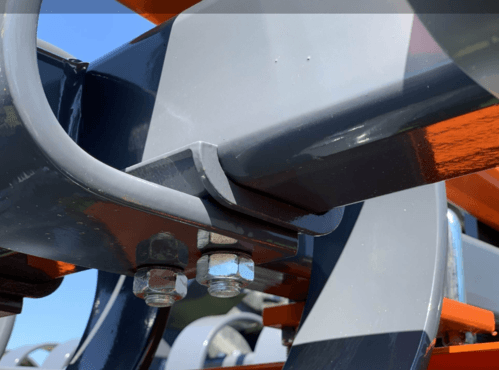 Déchaumeur à disques TAL-C qui fonctionne très bien sur sol pierreux. Avec ces disques crénelés de 560 mm de diamètre en acier fixés au palier sans entretien. Ressort amortisseur de taille 100x13 mm.