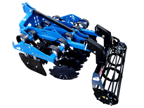 Disques Ø 510 mm, sécurité non-stop, châssis fixe ou extensible de 8 à 16 disques pour des largeurs de travail de 1 à 2,55 m, paliers de disques sans entretien, possibilité d'ajouter des disques émotteurs sur la tête d'attelage, option écartement hydraulique.