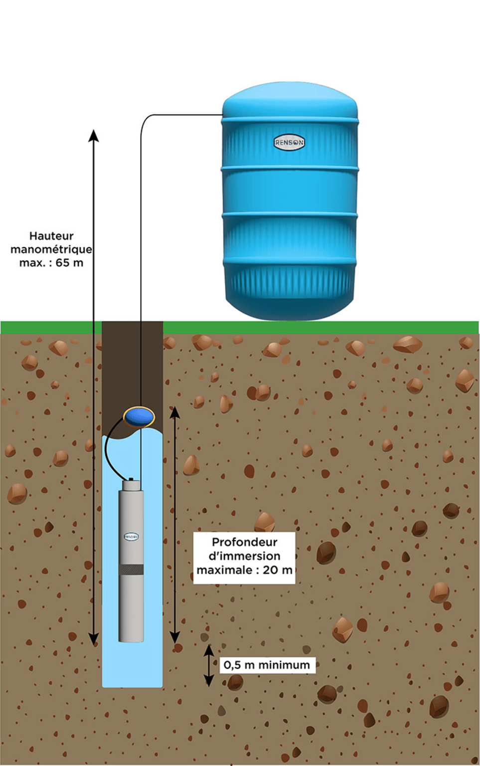 Pompe de puit profond eaux claires