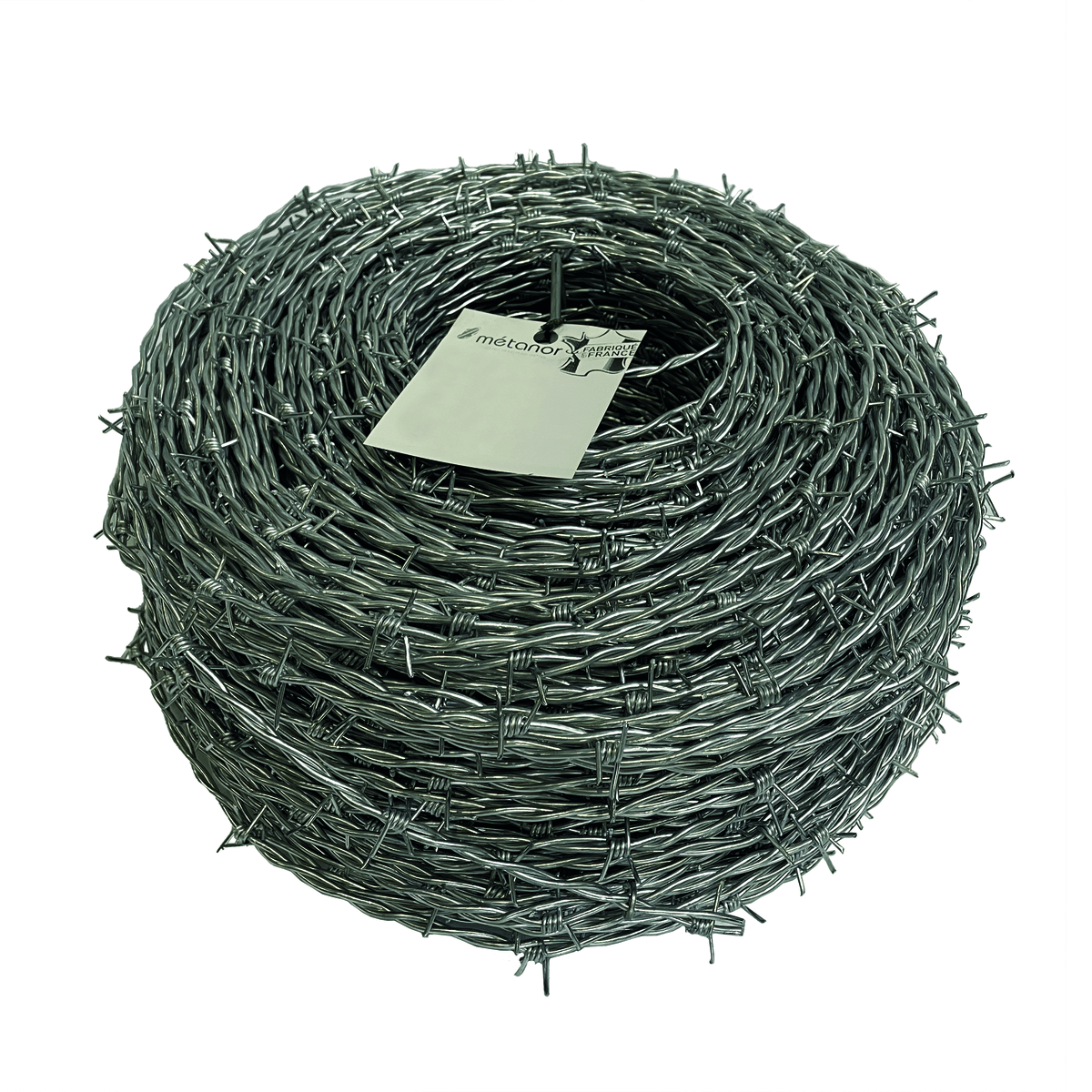 Galvanisé. Résistance : 45/55 kg/mm2. Ø : 2,2 mm. 4 picots espacés tous les 10 cm. Bobine de 200 m.