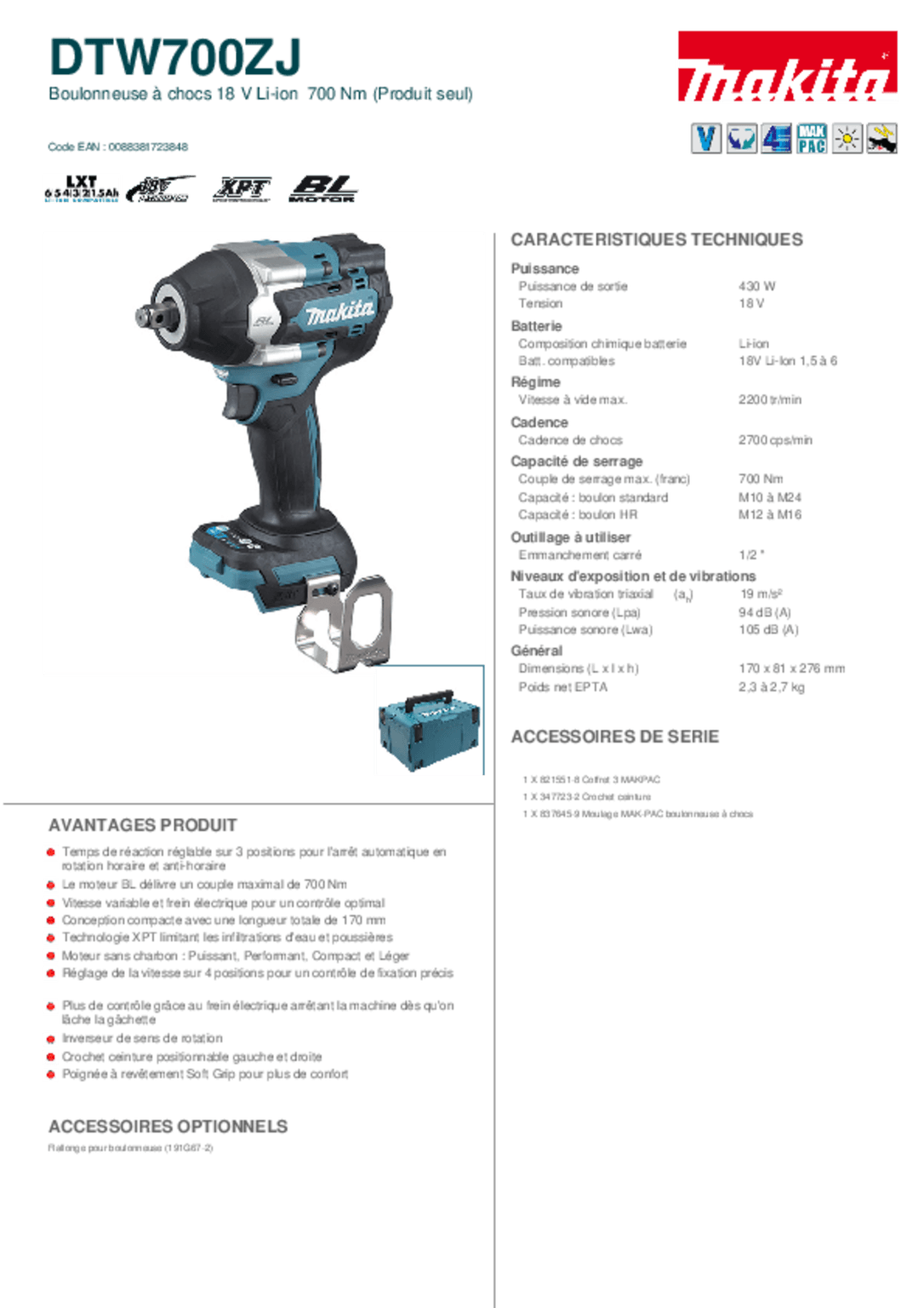 Capacité : boulon standard : M10 à M24, boulon HR : M12 à M16.
