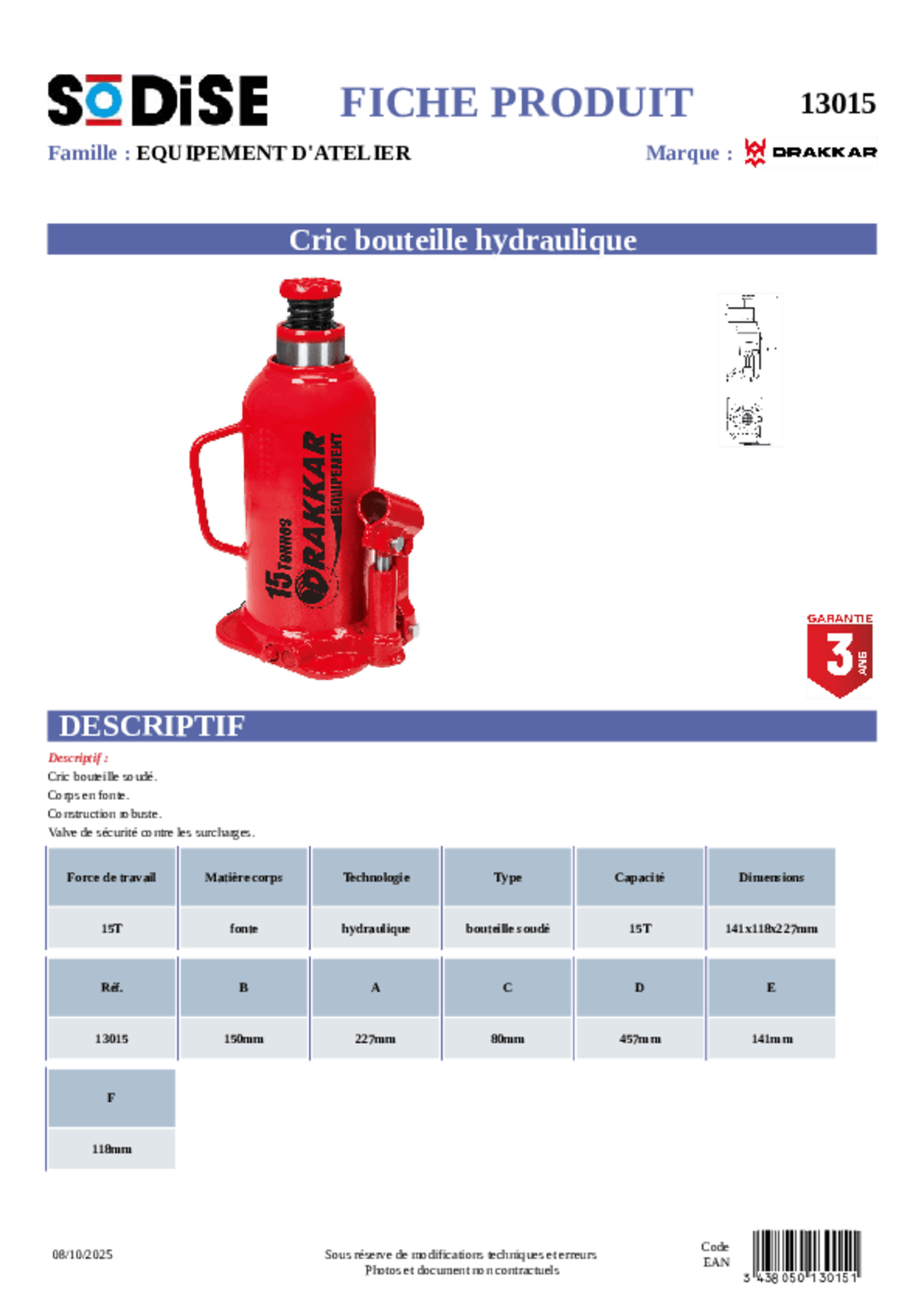 Hauteur mini : 580 mm. Hauteur maxi : 1 050 mm.