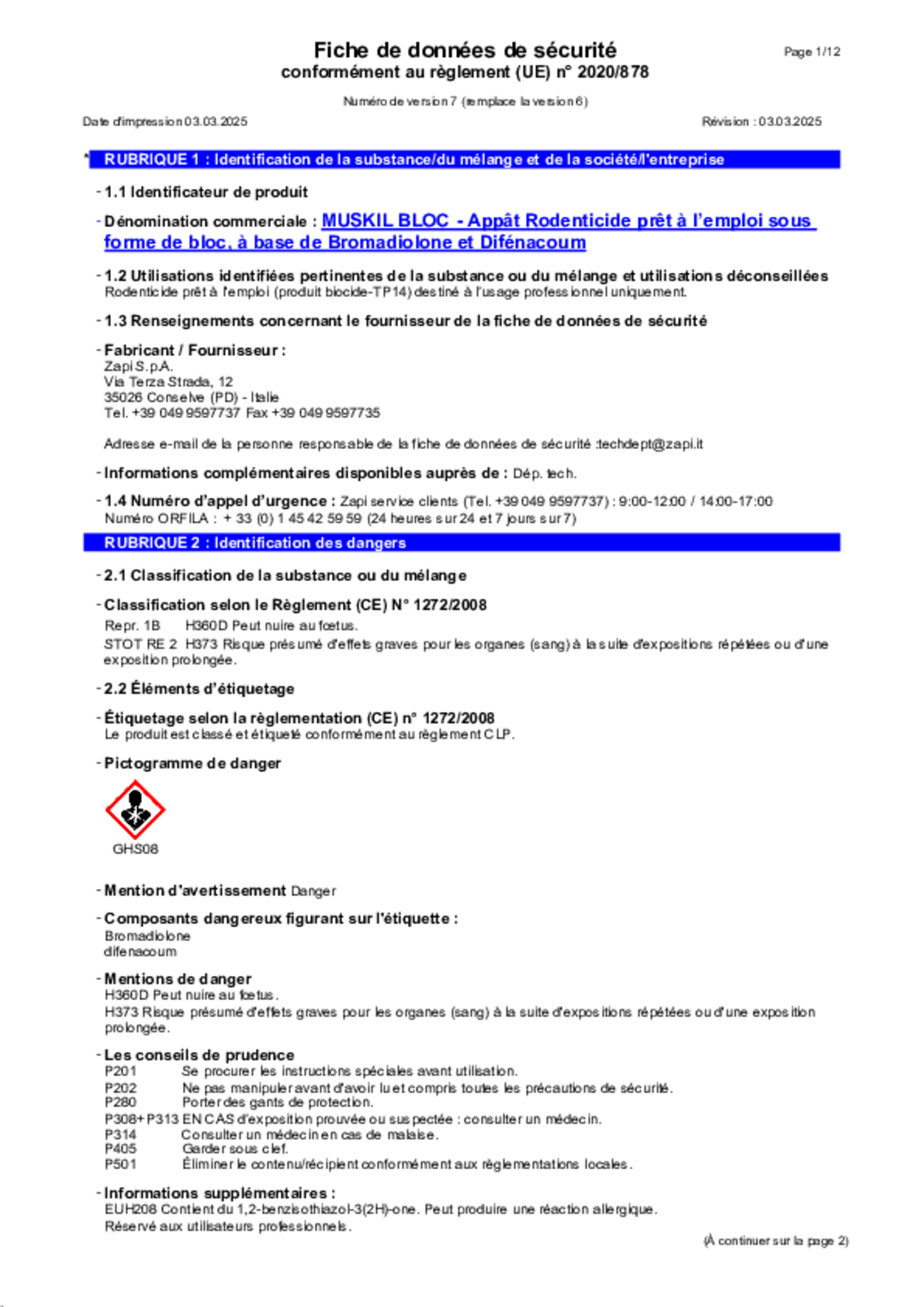 Raticide. TP 14-Rodenticide prêt à l'emploi. Composition : Matière active, Brodifacoum à 27 ppm (meilleure...
