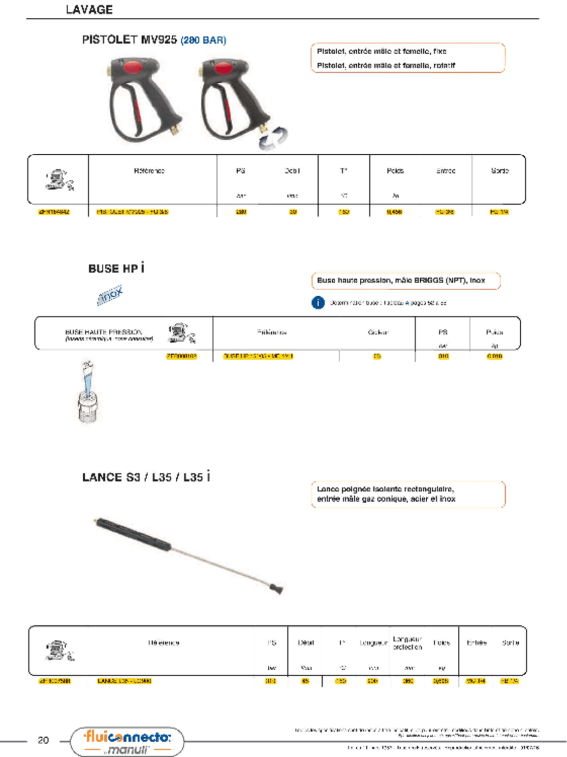 Pistolet de lavage, débit max : 1800 L/h.
