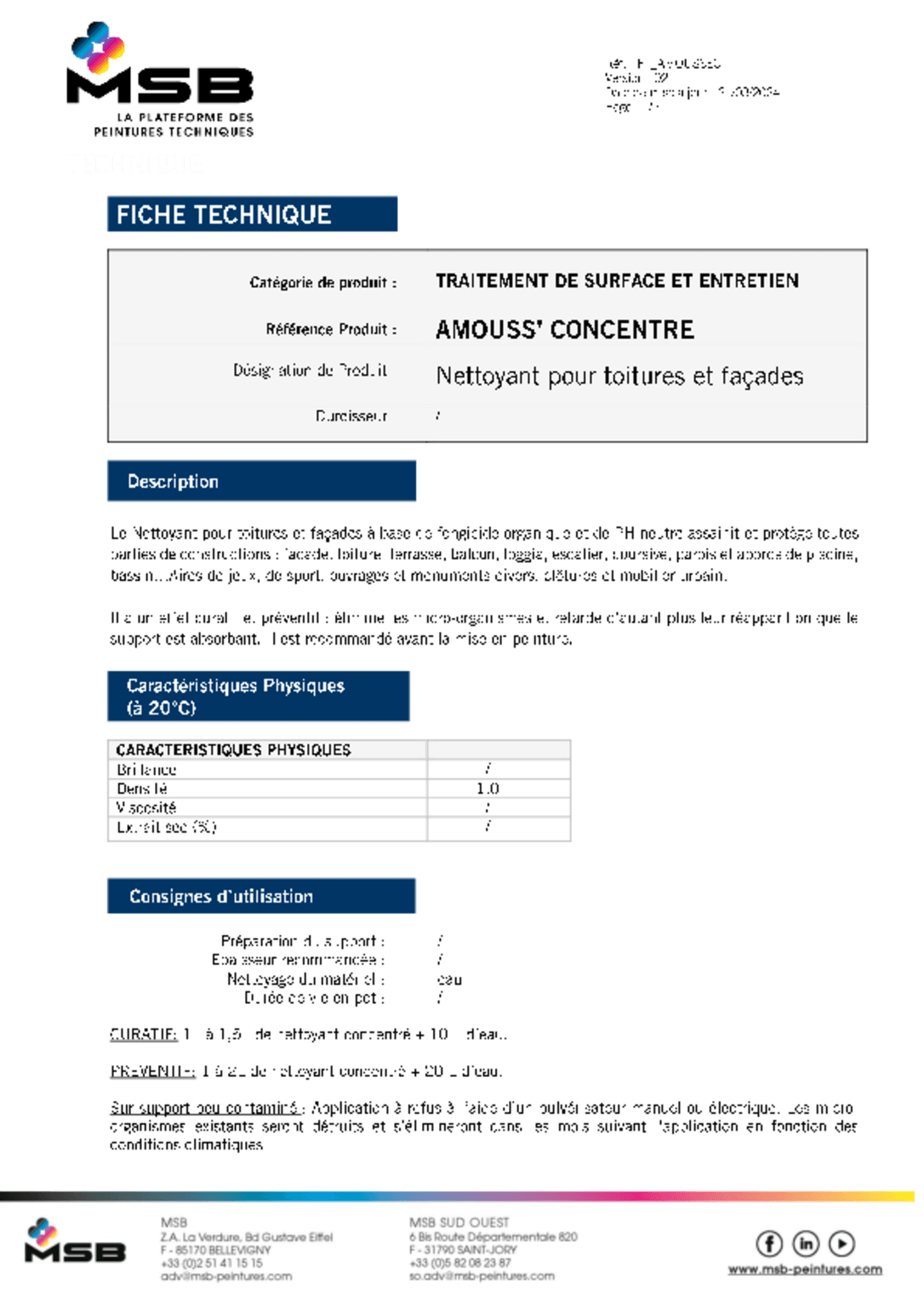Curatif et préventif : 1 L d'anti-mousse + 10 L d'eau.